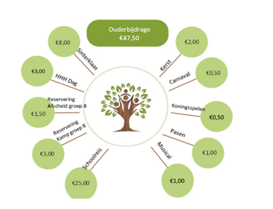 Het innen en beheren van vrijwillige ouderbijdrage, oud papieropbrengst en overige giften.